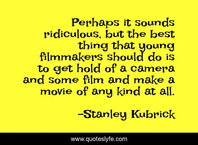 This page presents the quote "Perhaps it sounds ridiculous, but the best thing that young filmmakers should do is to get hold of a camera and some film and make a movie of any kind at all.". Author of this quote is Stanley Kubrick. This quote is about kind, camera, young,.