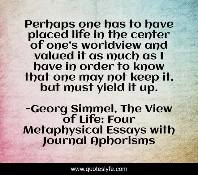 "Georg Simmel, The View of Life: Four Metaphysical Essays with Journal Aphorisms Quotes." Quoteslyfe.com, 2025. Fri. 05 Dec. 2025. <https://www.quoteslyfe.com/quote/Perhaps-one-has-to-have-placed-life-213880>.