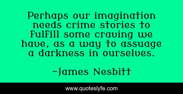 This page presents the quote "Perhaps our imagination needs crime stories to fulfill some craving we have, as a way to assuage a darkness in ourselves.". Author of this quote is James Nesbitt. This quote is about darkness, way, crime,.