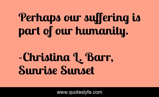 This page presents the quote "Perhaps our suffering is part of our humanity.". Author of this quote is Christina L. Barr, Sunrise Sunset. This quote is about contemporary-fantasy, romance, sci-fi-fantasy, young-adult, fiction,.