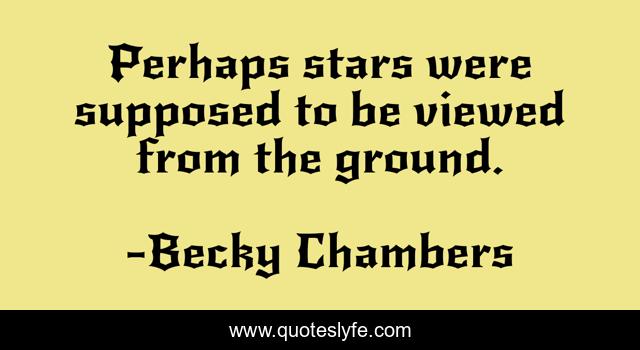 This page presents the quote "Perhaps stars were supposed to be viewed from the ground.". Author of this quote is Becky Chambers. This quote is about distance, stars, space,.
