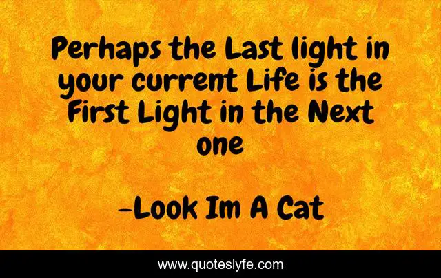 This page presents the quote "Perhaps the Last light in your current Life is the First Light in the Next one". Author of this quote is Look Im A Cat. This quote is about light, life, meaning,.