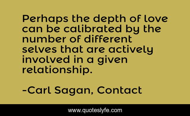 This page presents the quote "Perhaps the depth of love can be calibrated by the number of different selves that are actively involved in a given relationship.". Author of this quote is Carl Sagan, Contact. This quote is about relationships, love, affection,.