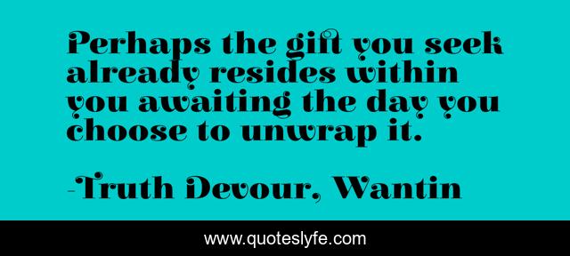 "Truth Devour, Wantin Quotes." Quoteslyfe.com, 2025. Sat. 06 Dec. 2025. <https://www.quoteslyfe.com/quote/Perhaps-the-gift-you-seek-already-resides-160457>.