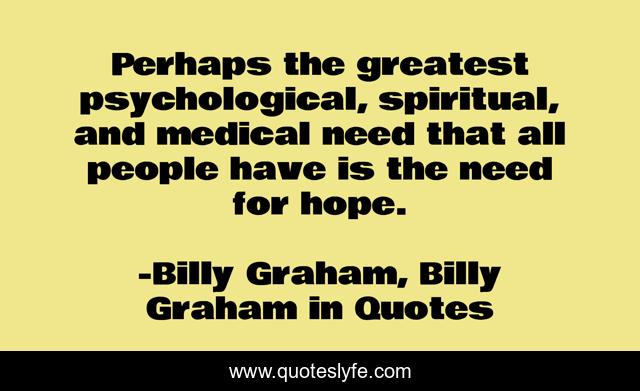 This page presents the quote "Perhaps the greatest psychological, spiritual, and medical need that all people have is the need for hope.". Author of this quote is Billy Graham, Billy Graham in Quotes. This quote is about hope, billy-graham,.