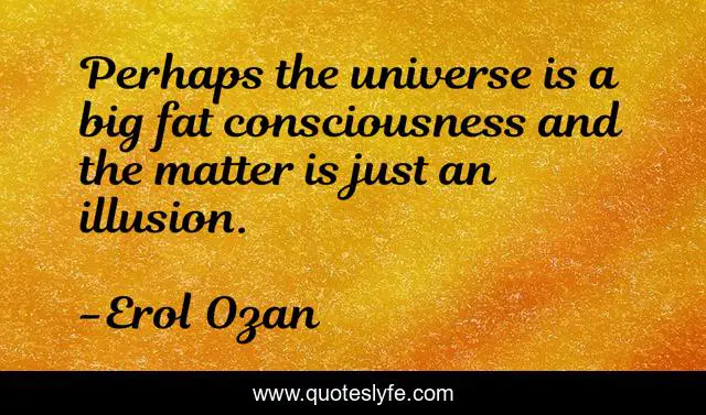This page presents the quote "Perhaps the universe is a big fat consciousness and the matter is just an illusion.". Author of this quote is Erol Ozan. This quote is about matter, cosmos, illusion, consciousness, universe,.