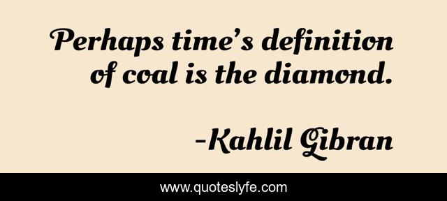 This page presents the quote "Perhaps time’s definition of coal is the diamond.". Author of this quote is Kahlil Gibran. This quote is about coal, diamond, time, inspirational, enthusiasm,.