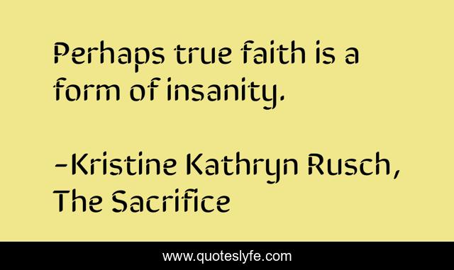 This page presents the quote "Perhaps true faith is a form of insanity.". Author of this quote is Kristine Kathryn Rusch, The Sacrifice. This quote is about faith, insanity,.