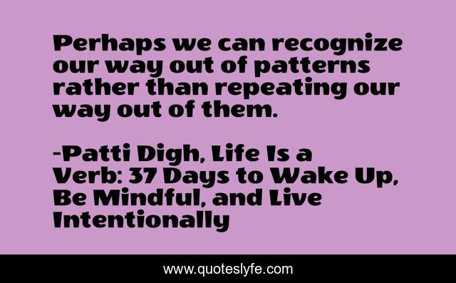 This page presents the quote "Perhaps we can recognize our way out of patterns rather than repeating our way out of them.". Author of this quote is Patti Digh, Life Is a Verb: 37 Days to Wake Up, Be Mindful, and Live Intentionally. This quote is about patterns, pay-attention, behavior, change,.