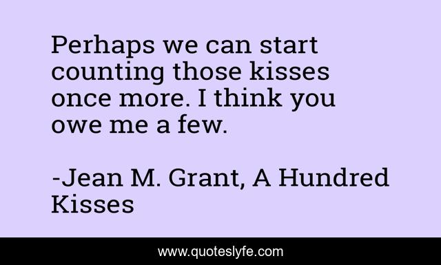 "Jean M. Grant, A Hundred Kisses Quotes." Quoteslyfe.com, 2025. Sat. 06 Dec. 2025. <https://www.quoteslyfe.com/quote/Perhaps-we-can-start-counting-those-kisses-213574>.