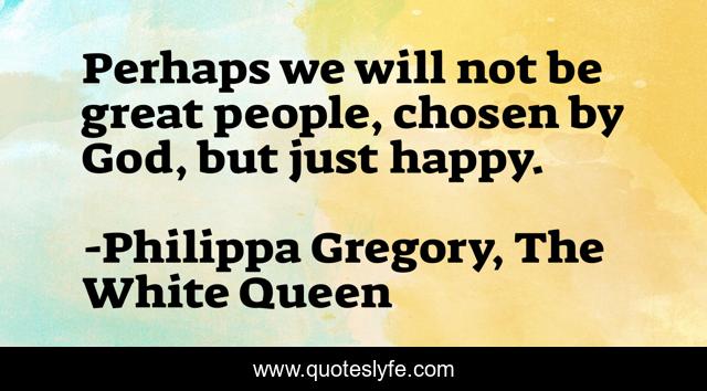 This page presents the quote "Perhaps we will not be great people, chosen by God, but just happy.". Author of this quote is Philippa Gregory, The White Queen. This quote is about family, happiness,.