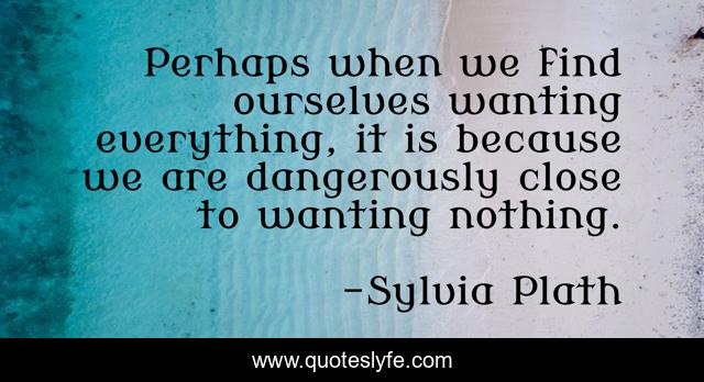 This page presents the quote "Perhaps when we find ourselves wanting everything, it is because we are dangerously close to wanting nothing.". Author of this quote is Sylvia Plath. .