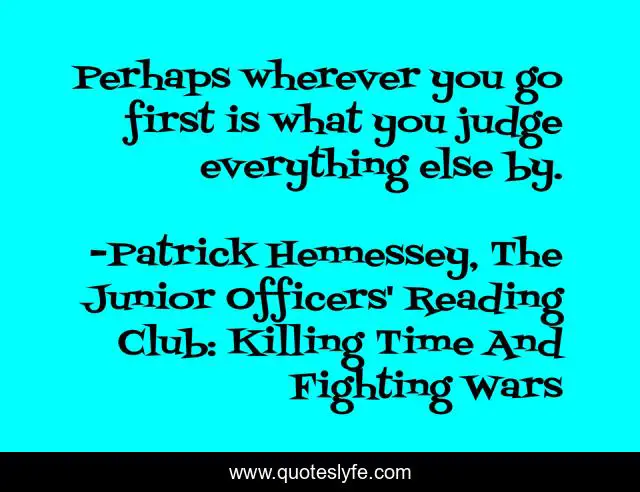 "Patrick Hennessey, The Junior Officers' Reading Club: Killing Time And Fighting Wars Quotes." Quoteslyfe.com, 2025. Fri. 05 Dec. 2025. <https://www.quoteslyfe.com/quote/Perhaps-wherever-you-go-first-is-what-181290>.