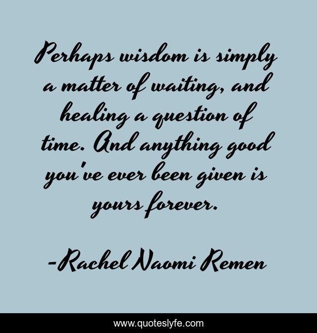 This page presents the quote "Perhaps wisdom is simply a matter of waiting, and healing a question of time. And anything good you've ever been given is yours forever.". Author of this quote is Rachel Naomi Remen. This quote is about healing, wisdom,.