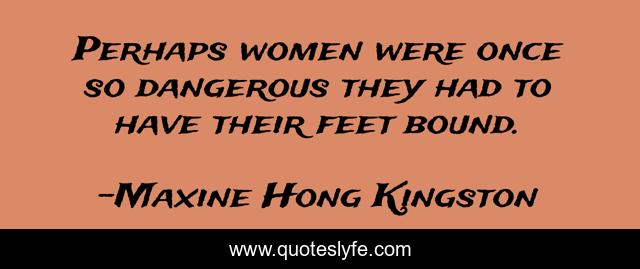 This page presents the quote "Perhaps women were once so dangerous they had to have their feet bound.". Author of this quote is Maxine Hong Kingston. This quote is about feminine-identity, chinese-american, feminism,.