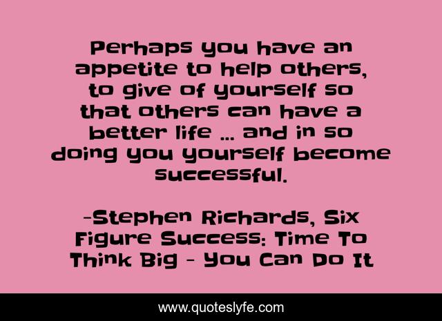 "Stephen Richards, Six Figure Success: Time To Think Big - You Can Do It Quotes." Quoteslyfe.com, 2025. Sun. 07 Dec. 2025. <https://www.quoteslyfe.com/quote/Perhaps-you-have-an-appetite-to-help-78129>.