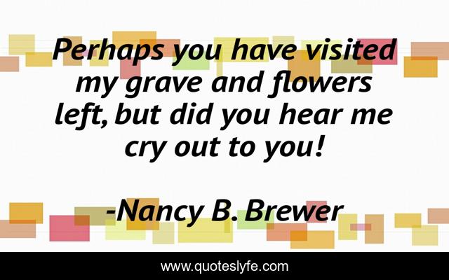 This page presents the quote "Perhaps you have visited my grave and flowers left, but did you hear me cry out to you!". Author of this quote is Nancy B. Brewer. .