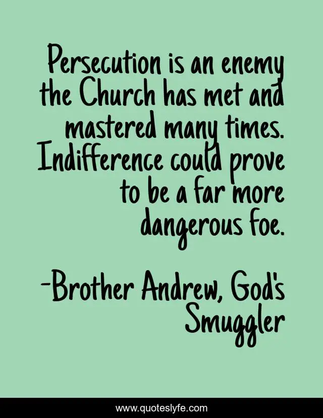 "Brother Andrew, God's Smuggler Quotes." Quoteslyfe.com, 2025. Sat. 06 Dec. 2025. <https://www.quoteslyfe.com/quote/Persecution-is-an-enemy-the-Church-has-193799>.