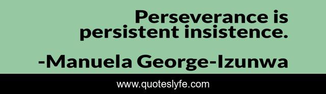 This page presents the quote "Perseverance is persistent insistence.". Author of this quote is Manuela George-Izunwa. .