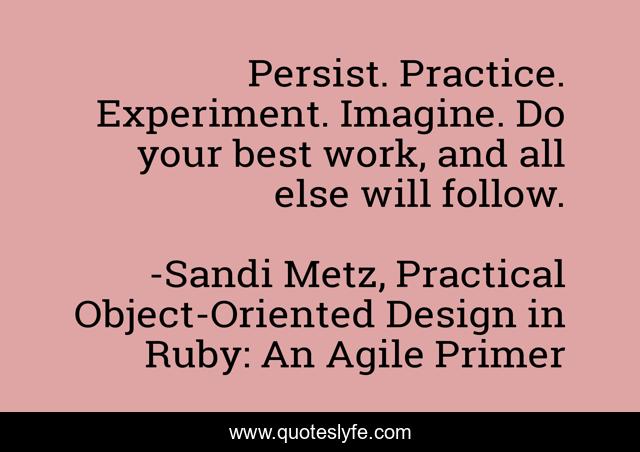 "Sandi Metz, Practical Object-Oriented Design in Ruby: An Agile Primer Quotes." Quoteslyfe.com, 2025. Fri. 05 Dec. 2025. <https://www.quoteslyfe.com/quote/Persist-Practice-Experiment-Imagine-Do-your-best-36655>.