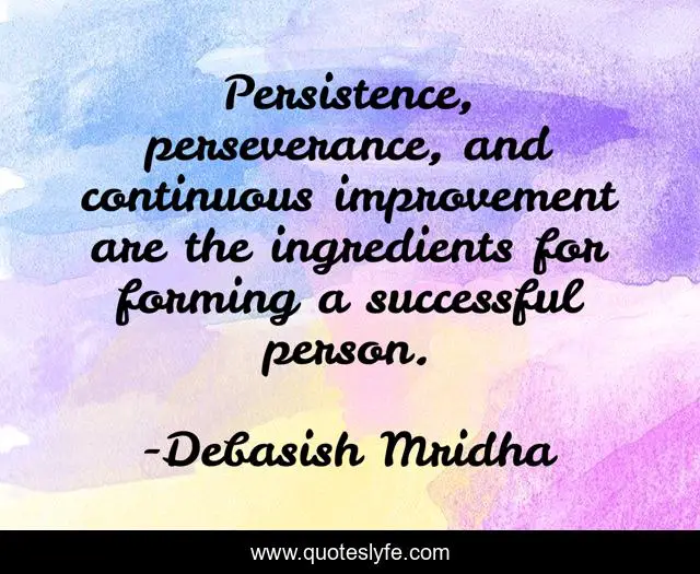 This page presents the quote "Persistence, perseverance, and continuous improvement are the ingredients for forming a successful person.". Author of this quote is Debasish Mridha. This quote is about success, philosophy, debasish-mridha, continuous-improvement, quotes, how-to-be-a-successful-person, inspirational, enthusiasm, debasish-mridha-m-d,.