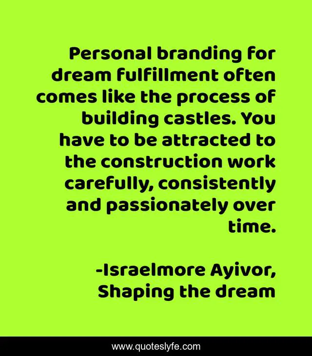 "Israelmore Ayivor, Shaping the dream Quotes." Quoteslyfe.com, 2025. Tue. 09 Dec. 2025. <https://www.quoteslyfe.com/quote/Personal-branding-for-dream-fulfillment-often-comes-129556>.