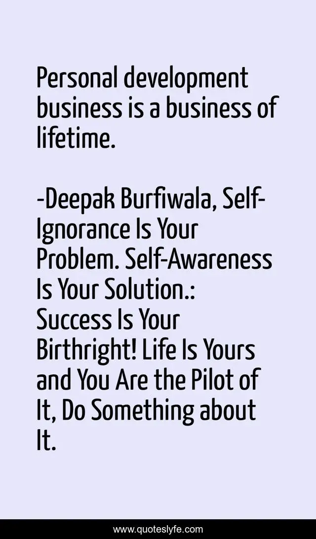 "Deepak Burfiwala, Self-Ignorance Is Your Problem. Self-Awareness Is Your Solution.: Success Is Your Birthright! Life Is Yours and You Are the Pilot of It, Do Something about It. Quotes." Quoteslyfe.com, 2025. Fri. 05 Dec. 2025. <https://www.quoteslyfe.com/quote/Personal-development-business-is-a-business-of-140604>.