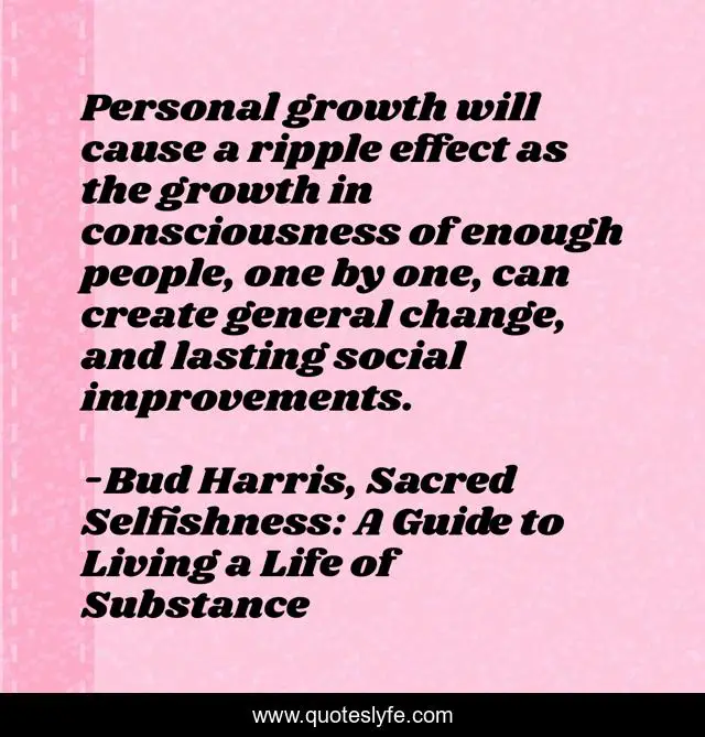 "Bud Harris, Sacred Selfishness: A Guide to Living a Life of Substance Quotes." Quoteslyfe.com, 2025. Fri. 05 Dec. 2025. <https://www.quoteslyfe.com/quote/Personal-growth-will-cause-a-ripple-effect-146783>.