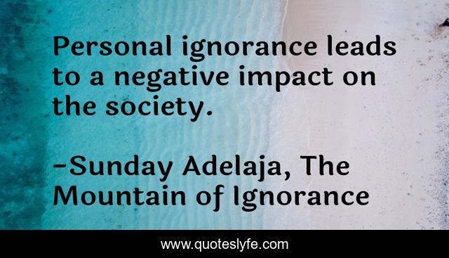 This page presents the quote "Personal ignorance leads to a negative impact on the society.". Author of this quote is Sunday Adelaja, The Mountain of Ignorance. This quote is about impact, mountain, life, darkness, power, danger, god, negative-impact, people,.