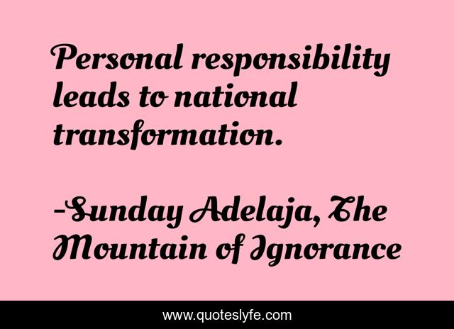 "Sunday Adelaja, The Mountain of Ignorance Quotes." Quoteslyfe.com, 2025. Mon. 08 Dec. 2025. <https://www.quoteslyfe.com/quote/Personal-responsibility-leads-to-national-transformation-31017>.