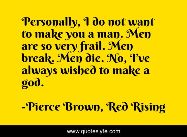 "Pierce Brown, Red Rising Quotes." Quoteslyfe.com, 2025. Sun. 07 Dec. 2025. <https://www.quoteslyfe.com/quote/Personally-I-do-not-want-to-make-10761>.