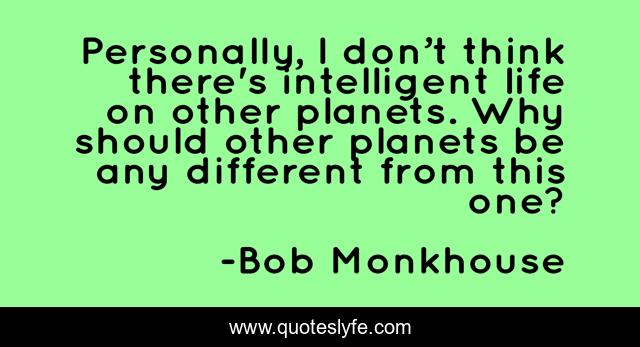This page presents the quote "Personally, I don’t think there's intelligent life on other planets. Why should other planets be any different from this one?". Author of this quote is Bob Monkhouse. .