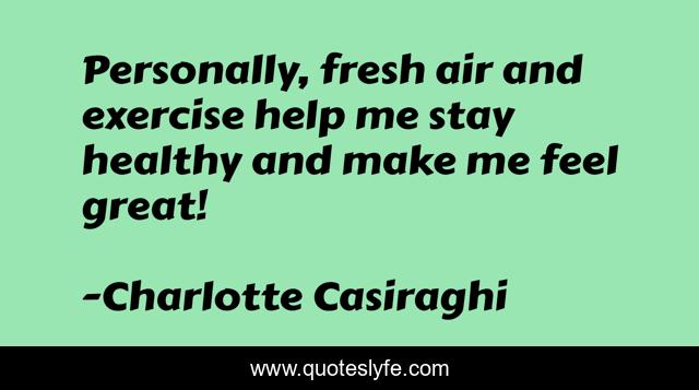 This page presents the quote "Personally, fresh air and exercise help me stay healthy and make me feel great!". Author of this quote is Charlotte Casiraghi. This quote is about me, healthy, help,.