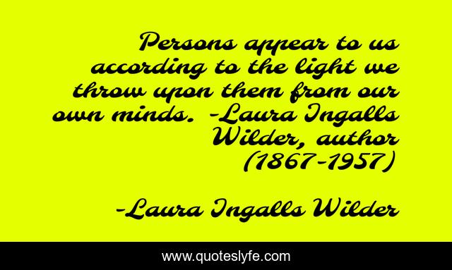 Persons appear to us according to the light we throw upon them from our own minds. -Laura Ingalls Wilder, author (1867-1957)