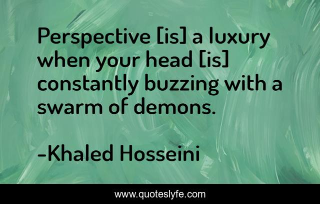 This page presents the quote "Perspective [is] a luxury when your head [is] constantly buzzing with a swarm of demons.". Author of this quote is Khaled Hosseini. This quote is about perspective, the-kite-runner,.