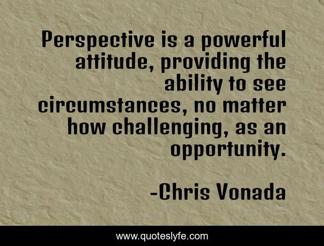 This page presents the quote "Perspective is a powerful attitude, providing the ability to see circumstances, no matter how challenging, as an opportunity.". Author of this quote is Chris Vonada. This quote is about perspective, change, inspiration,.