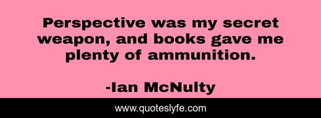 This page presents the quote "Perspective was my secret weapon, and books gave me plenty of ammunition.". Author of this quote is Ian McNulty. This quote is about new-orleans, books, perspective,.