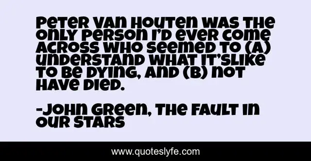 "John Green, The Fault in Our Stars Quotes." Quoteslyfe.com, 2025. Fri. 05 Dec. 2025. <https://www.quoteslyfe.com/quote/Peter-Van-Houten-was-the-only-person-223096>.