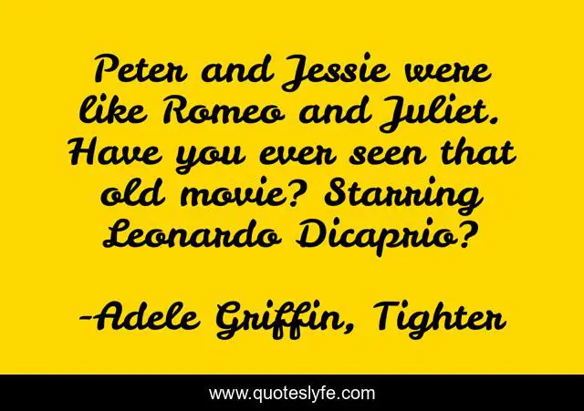 This page presents the quote "Peter and Jessie were like Romeo and Juliet. Have you ever seen that old movie? Starring Leonardo Dicaprio?". Author of this quote is Adele Griffin, Tighter. .