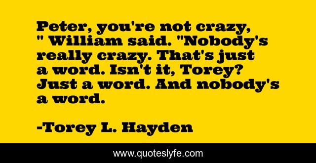 "Torey L. Hayden Quotes." Quoteslyfe.com, 2025. Sat. 06 Dec. 2025. <https://www.quoteslyfe.com/quote/Peter-you-re-not-crazy-William-said-208522>.