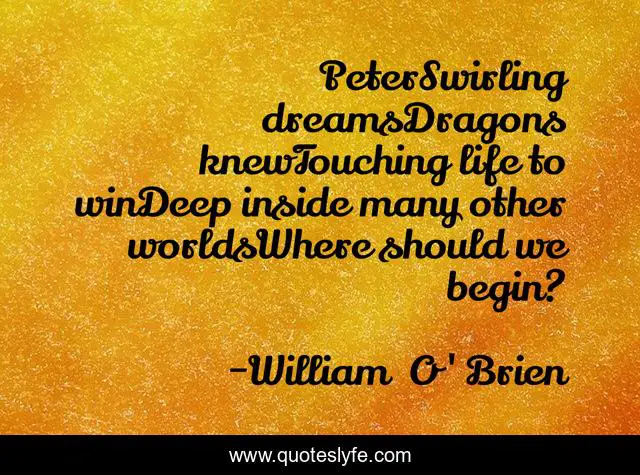 "William O'Brien Quotes." Quoteslyfe.com, 2025. Mon. 08 Dec. 2025. <https://www.quoteslyfe.com/quote/PeterSwirling-dreamsDragons-knewTouching-life-to-winDeep-inside-134117>.