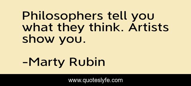This page presents the quote "Philosophers tell you what they think. Artists show you.". Author of this quote is Marty Rubin. This quote is about philosophers, art, artists,.