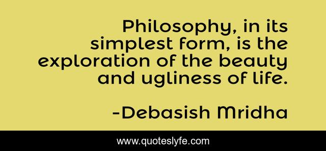 This page presents the quote "Philosophy, in its simplest form, is the exploration of the beauty and ugliness of life.". Author of this quote is Debasish Mridha. This quote is about exploration-of-beauty, beauty, philosophy, debasish-mridha, quotes, ugliness-of-life, inspirational, enthusiasm, debasish-mridha-m-d,.
