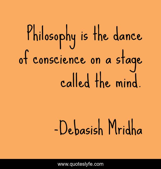 This page presents the quote "Philosophy is the dance of conscience on a stage called the mind.". Author of this quote is Debasish Mridha. This quote is about conscience, stage-called-the-mind, debasish-mridha, philosophy, mind, quotes, inspirational, enthusiasm, debasish-mridha-m-d,.