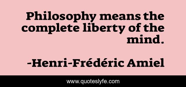 "Henri-Frédéric Amiel Quotes." Quoteslyfe.com, 2025. Sat. 06 Dec. 2025. <https://www.quoteslyfe.com/quote/Philosophy-means-the-complete-liberty-of-the-87912>.