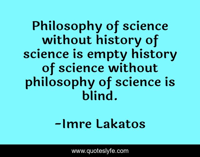 This page presents the quote "Philosophy of science without history of science is empty history of science without philosophy of science is blind.". Author of this quote is Imre Lakatos. This quote is about blind, philosophy, history,.