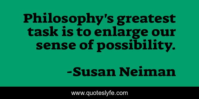 This page presents the quote "Philosophy's greatest task is to enlarge our sense of possibility.". Author of this quote is Susan Neiman. This quote is about philosophy, enlightenment-ideals, personal-growth,.