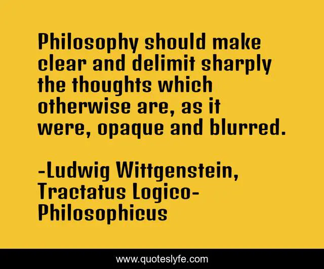 This page presents the quote "Philosophy should make clear and delimit sharply the thoughts which otherwise are, as it were, opaque and blurred.". Author of this quote is Ludwig Wittgenstein, Tractatus Logico-Philosophicus. This quote is about thought, clarity, philosophy,.
