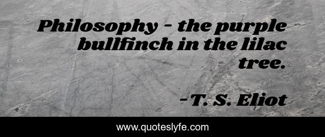 This page presents the quote "Philosophy - the purple bullfinch in the lilac tree.". Author of this quote is T. S. Eliot. .