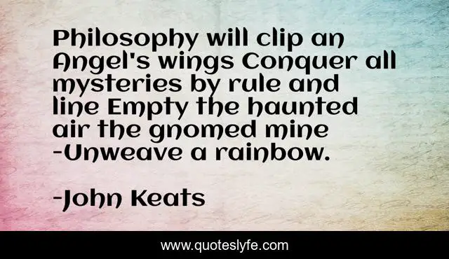 "John Keats Quotes." Quoteslyfe.com, 2025. Sat. 06 Dec. 2025. <https://www.quoteslyfe.com/quote/Philosophy-will-clip-an-Angel-s-wings-272940>.